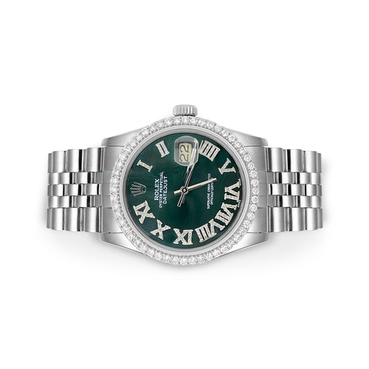 Rolex Datejust Diamond Bezel Watch 36mm Green Roman Diamond Dial | 1.65ct
