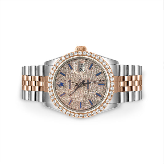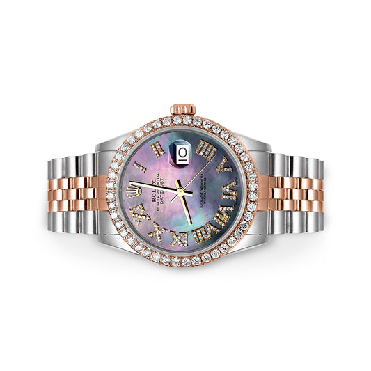 Rolex Datejust Diamond Bezel Watch 36mm Blue Mother Of Pearl Roman Diamond Dial | 1.90ct