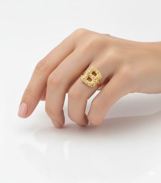 10K Solid Yellow Gold Nugget Bubble Initial Ring – Custom Letter Ring for Men & Women - ALL LETTERS