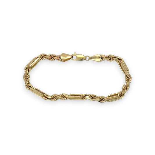 Monaco Chain Figaro Royal Plain Link Bracelet 14K Yellow Gold - Hollow