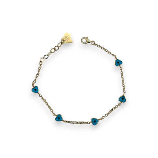 Custom Name Heart Evil Eye Bracelet - 14K Yellow Gold