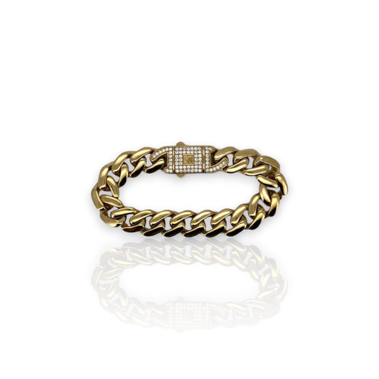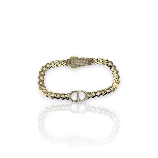 Pave "CD" Link Cz Bracelet - 10K Yellow Gold