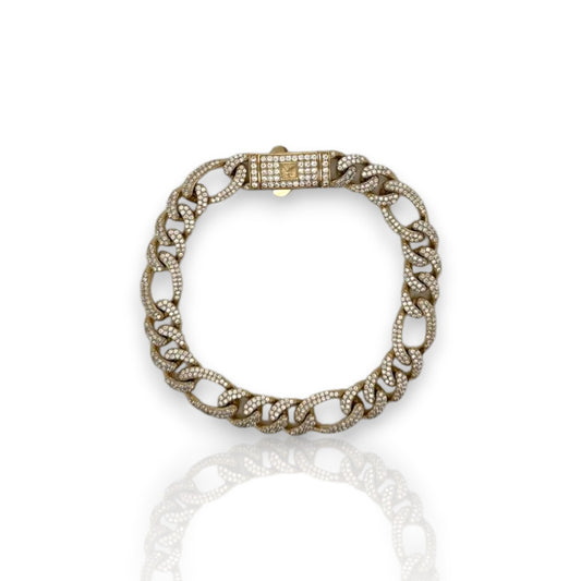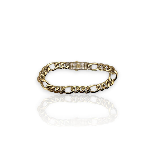 Figaro Link Cz Bracelet - 10K Yellow Gold