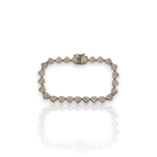 Heart Link Cz Bracelet - 10K Yellow Gold