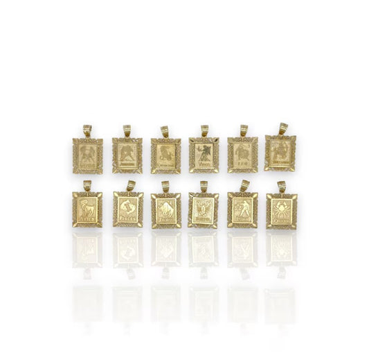 Zodiac Rectangle Pendant - 10K Yellow Gold