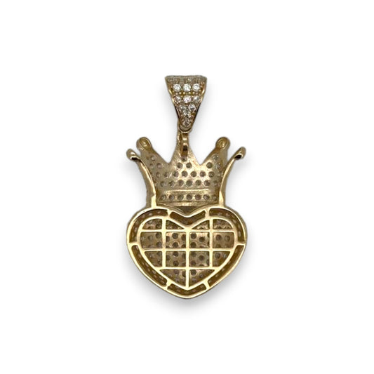 Heart Crown CZ Pendant - 14K Yellow Gold