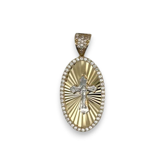 Oval Cross Jesus Pendant - 14K Yellow Gold