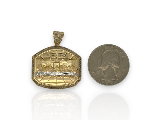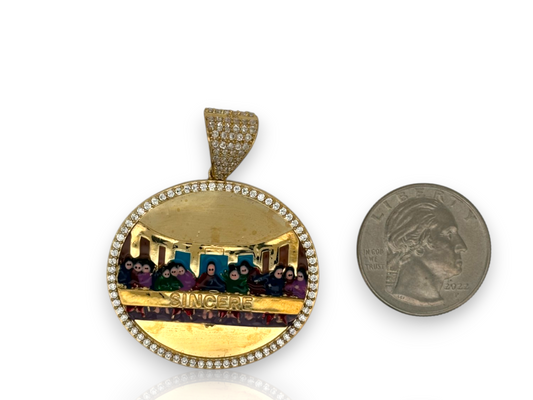 10K Yellow Gold Apostles Last Supper Charm/Pendant, Authentic, Textured Jesus Cross with Disciples Faith, Diamond Cut - Real 10k pendant