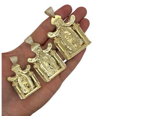 Virgin Mary Guadalupe 3D Pendant - 10K Yellow Gold - Size Variations