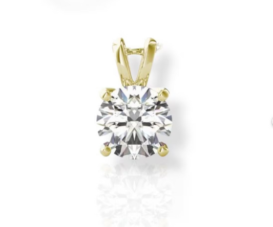 14K Solid Gold Solitaire GRA Certified Round Cut Moissanite Pendant | Classy Round Pendant Set With CZ | 14K Gold Solitaire Pendants