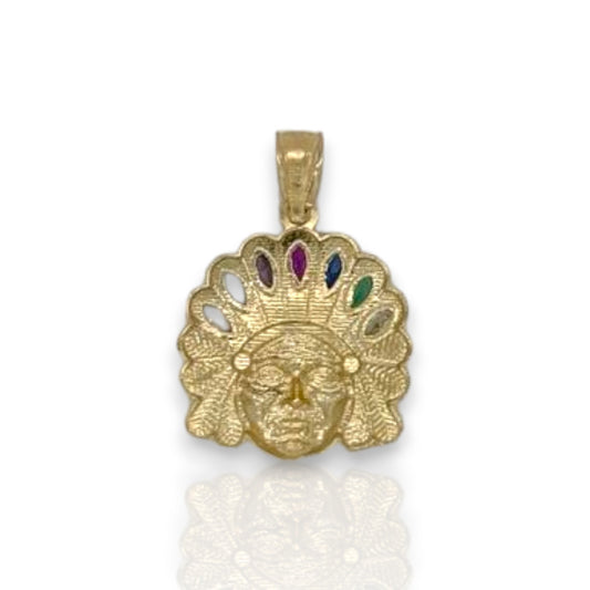 Native American "Cheef" Cz Pendant - 14k Yellow Gold