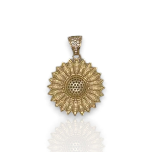 Flower Two Tone Cz Pendant - 14K Yellow Gold
