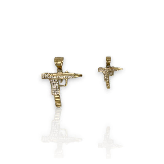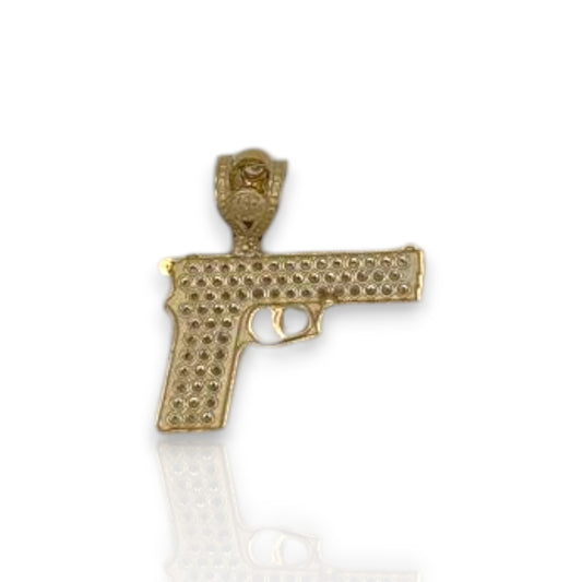 Gun "Pistol" Cz Pendant - 14K Yellow Gold