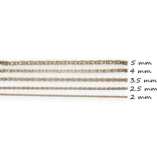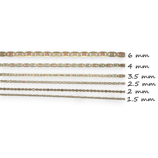 10K Fully Solid Valentino Tri Color Link Anklet - 10K Yellow Gold