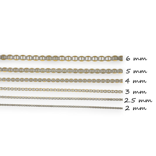 10K Fully Solid Valentino Two Tone Link Anklet - 10K Yellow Gold