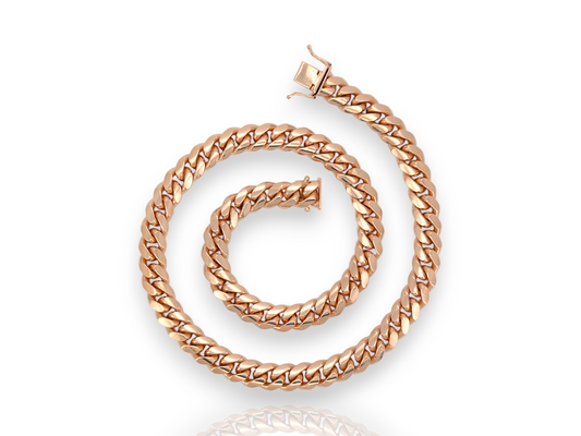 Miami Cuban Link Chain Necklace 14K Rose Gold - Solid