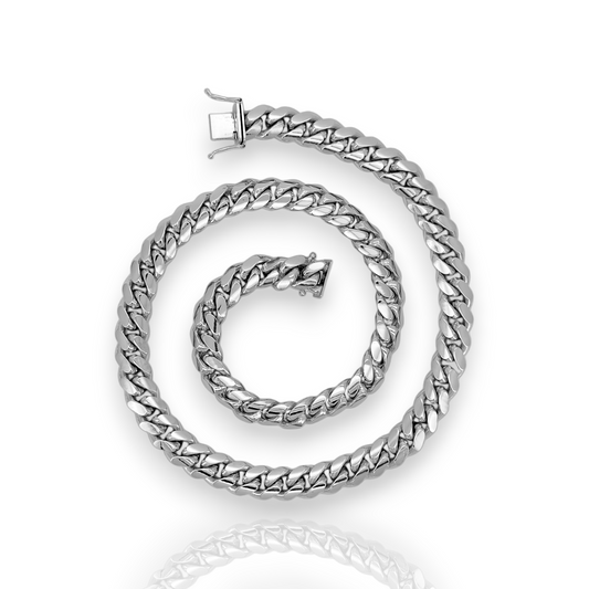 Miami Cuban Link Chain Necklace 14K White Gold - Solid