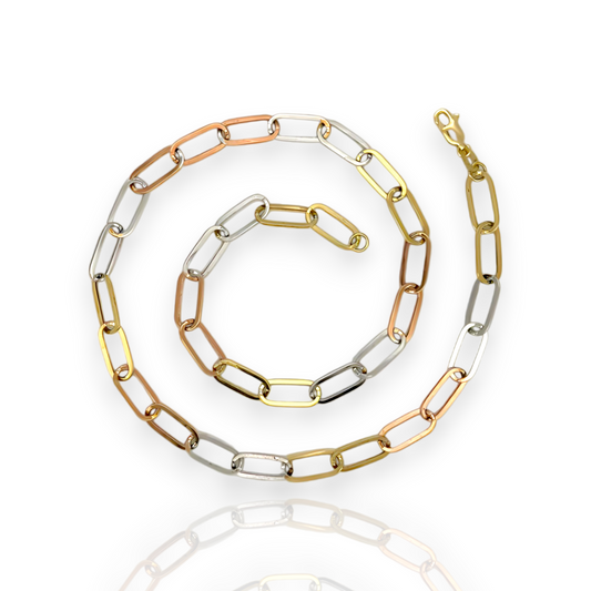 Paperclip Link Chain Necklace - 14K Tri Color Gold