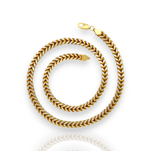 Round Franco Box Chain Necklace - 10K Two Tone Yellow Pave Gold - Solid