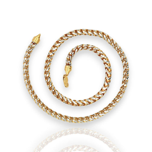 Round Franco Box Chain Necklace - 14K Two Tone Yellow Pave Gold - Solid