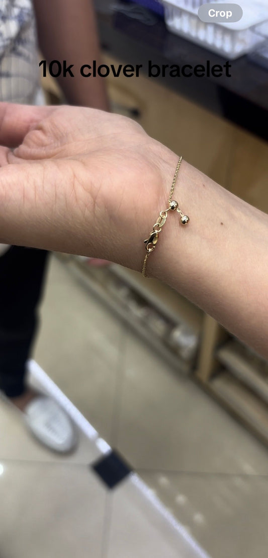 10K Yellow Gold Clover Leaf Bracelet – Adjustable Lucky Charm Jewelry