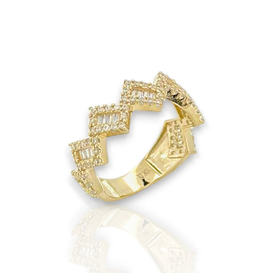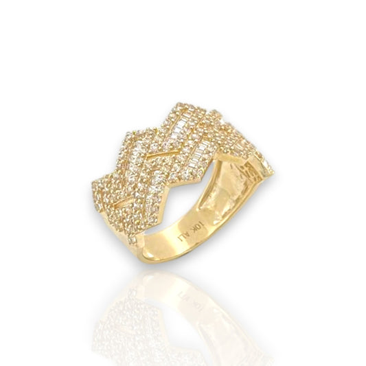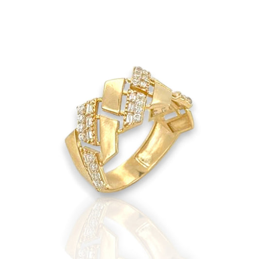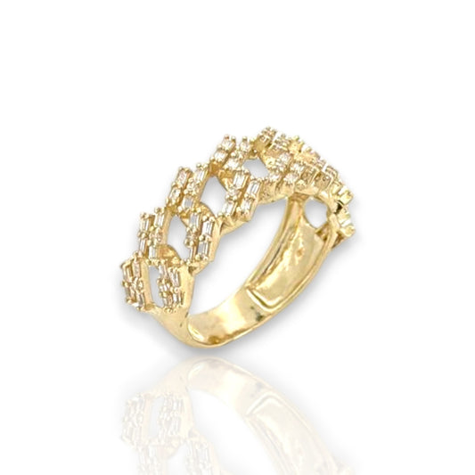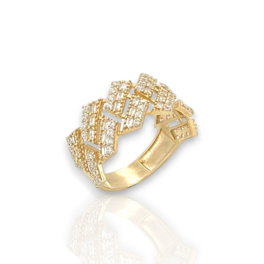 Miami Cuban Link Round and Baguette Cut Cz Ring - 10k Yellow Gold
