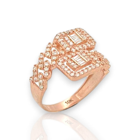 Miami Cuban With Baguette and Round Cut Wrap Ring With CZ - 10K Rose Gold