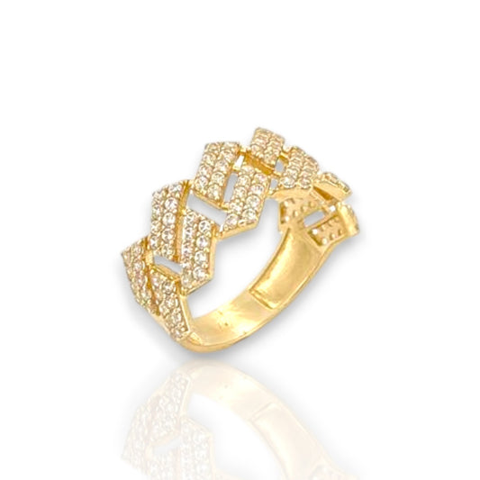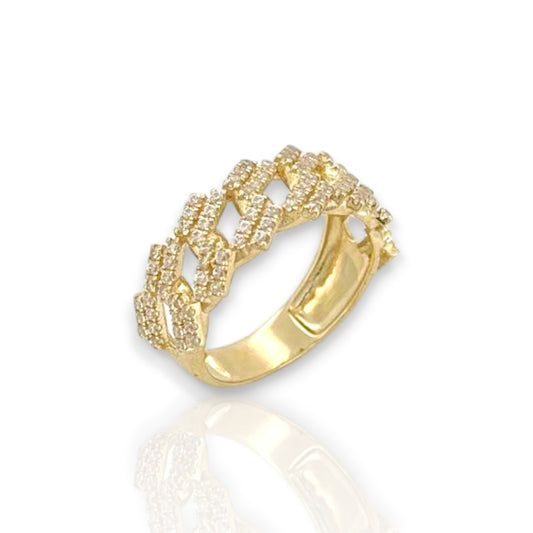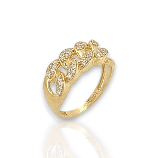 Miami Cuban Link Round Cut Cz Ring - 10k Yellow Gold