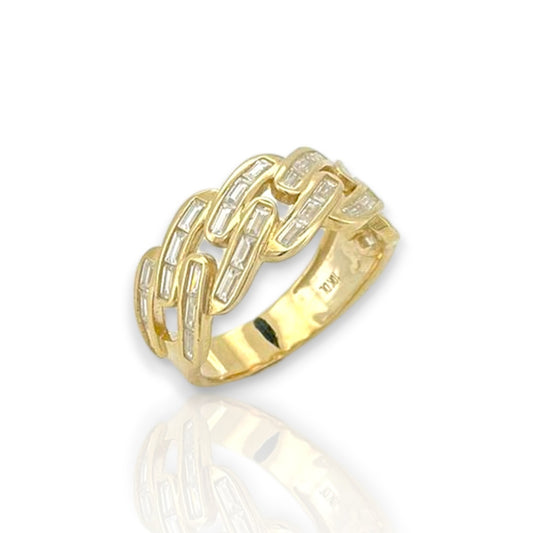 Miami Cuban Link Baguette Cut Cz Ring - 10k Yellow Gold