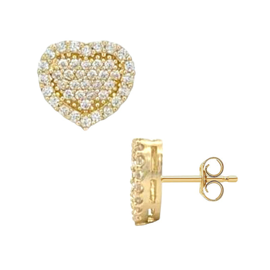 Yellow Gold CZ Round Cut Micro-Pave Heart Stud Earrings - 10k Yellow Gold