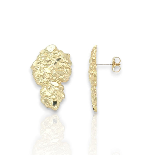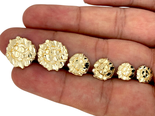 Round Nugget Stud Earrings - 10K Yellow Gold
