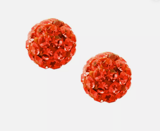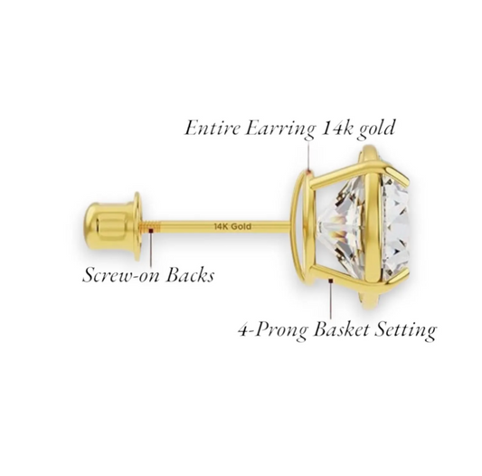 14K Yellow Gold Round Crystal Ball Screw Back Stud Earrings 6mm