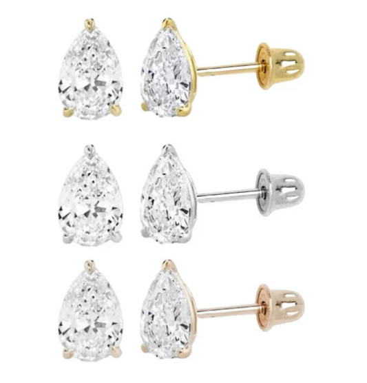 14K Solid Gold GRA Certified D Color VVS1 Pear Teardrop Shaped Moissanite Stud Earrings | Pushback Studs- Screwback studs - Cubic Zirconia