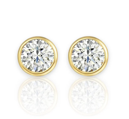 Certified D Color VVS1 Moissanite Solitaire Bezel Set Stud Earrings Skewbacks 14K Gold Earrings With GRA Certificates - Bezel Set Earrings