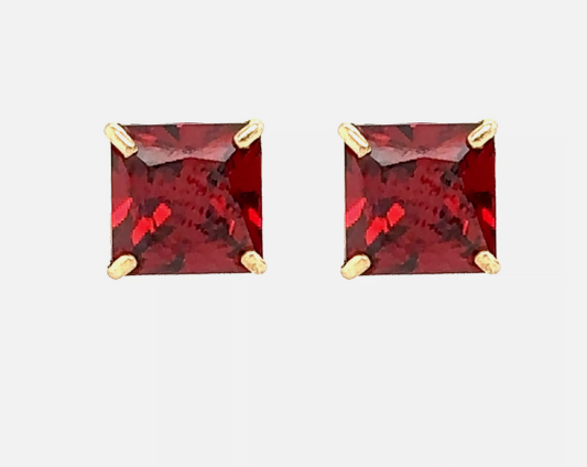 14K Solid Yellow Gold Square Princess Cut CZ Birthstone Stud Earrings All Size