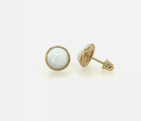 14K Yellow Gold Opal Screw Back Solitaire Stud Earrings