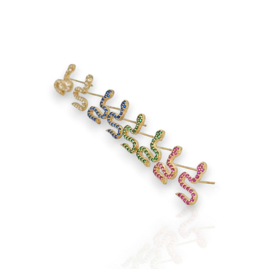 Tiny Snake CZ Stud Earrings - 10K Yellow Gold