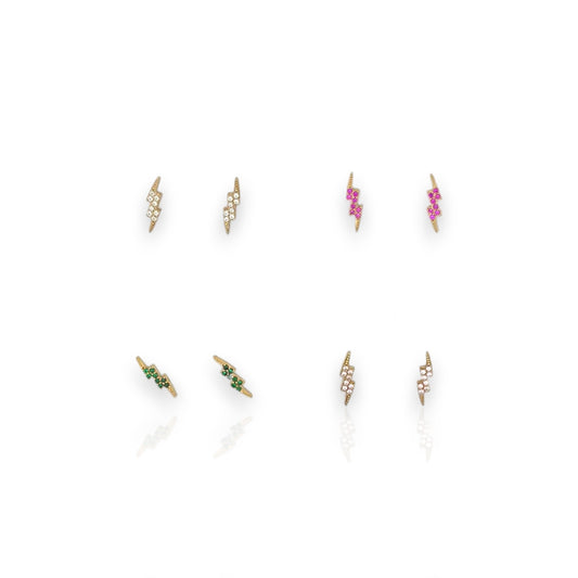 Lightning CZ Stud Earrings - 10K Yellow Gold