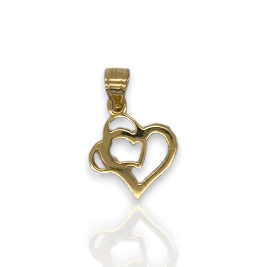 Double Heart Cz Pendant - 10K Yellow Gold