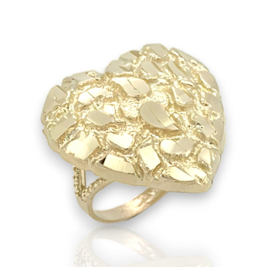 Textured Diamond Cut Heart Shaped Nugget Ring - 10K Yellow Gold