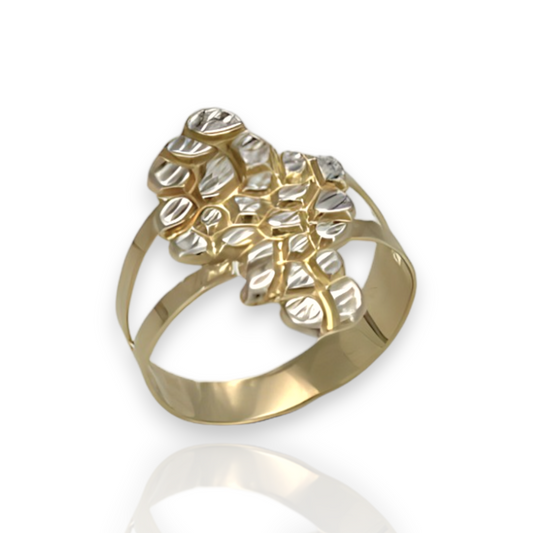 Large Textured Two-Tone Nugget Square Ring - 10K Yellow Pave