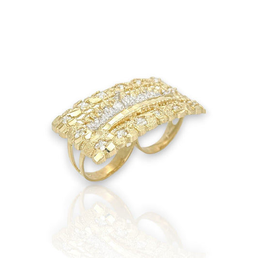 Nugget Last Supper Cubic Zirconia Double Finger Ring - 10K Yellow Gold