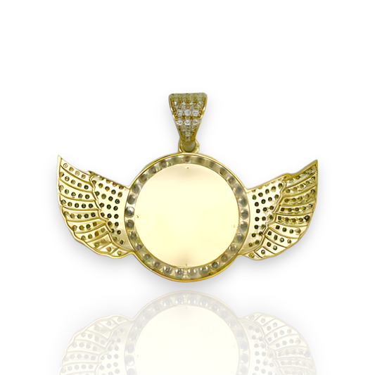 Angel Wings Picture Frame Memory CZ Pendant - 10K Yellow Gold