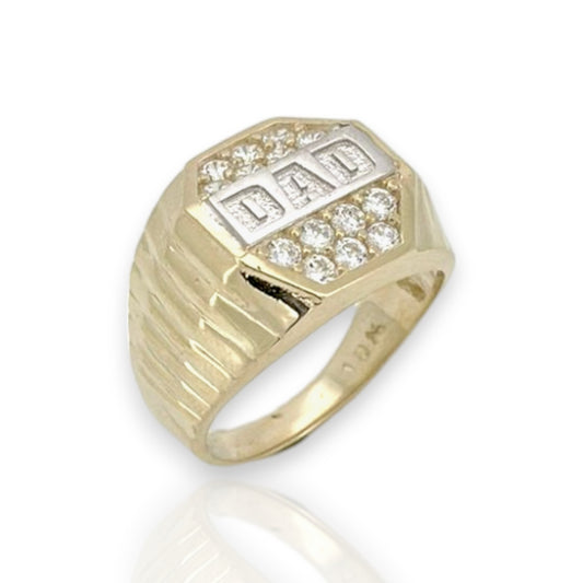 Mens DAD CZ Signet Ring - 10k Yellow Gold