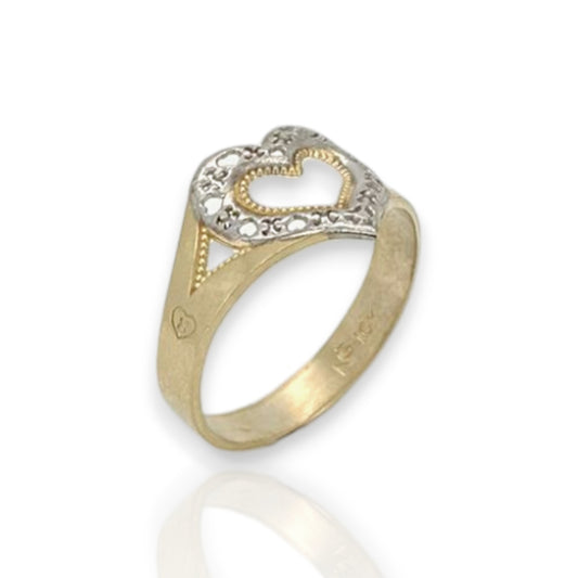Two-Tone Heart & Kisses Ring - 10K Yellow Gold