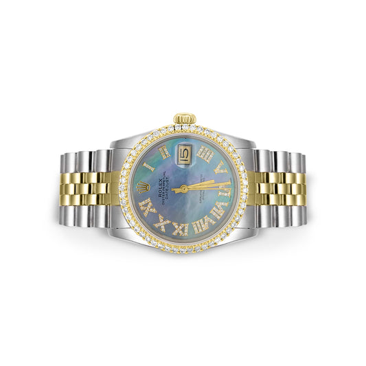 Rolex Datejust Diamond Bezel Watch 36mm Blue Mother Of Pearl Roman Diamond Dial | 1.75ct