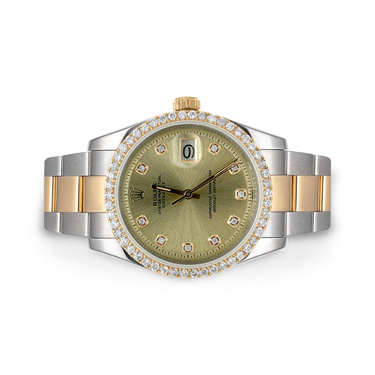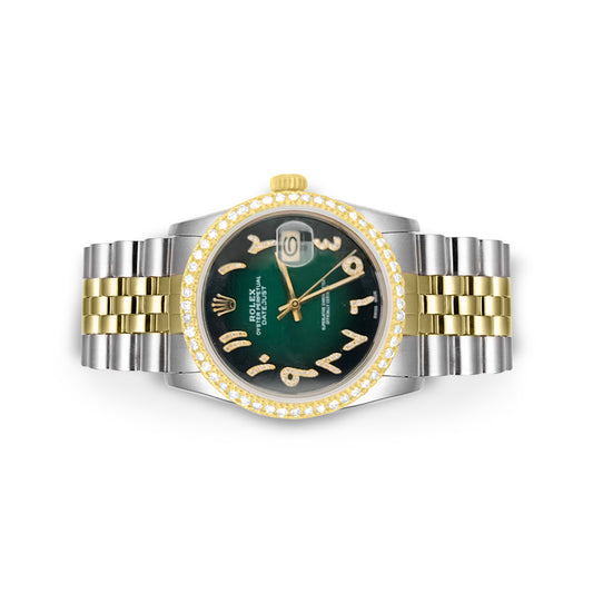 Rolex Datejust Diamond Bezel Watch 36mm Green Arabic Diamond Dial | 1.75ct