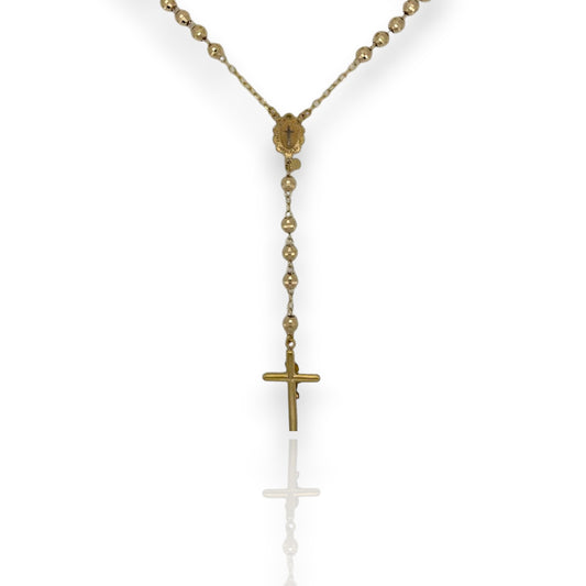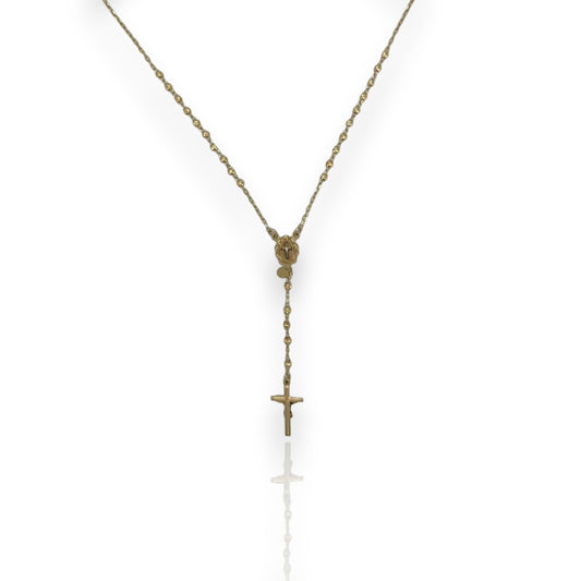Diamond-Cut Cross Rosary Crucifix Chain Necklace 10K Yellow Gold