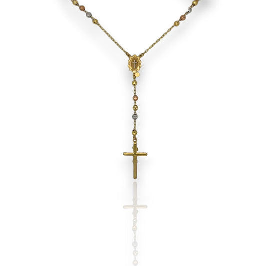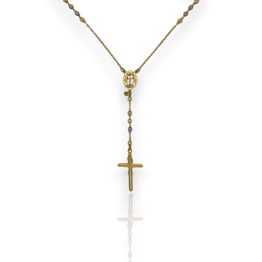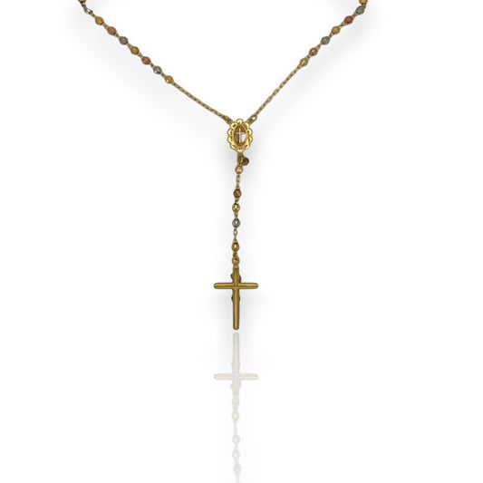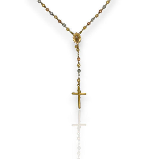 Diamond-Cut Cross Rosary Crucifix Chain Necklace 10K Tri-Color Gold