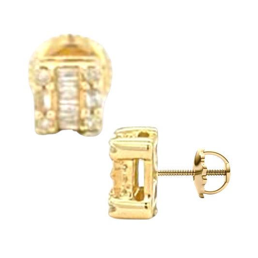 0.50ct Diamond Baguette and Round Stud Earrings - 14k Yellow Gold